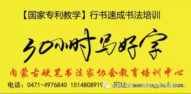 内蒙古硬笔书法家协会推出:获得国家专利的(30小时写好钢笔 字)科学实用"T"型习字法。该方法具有规律性,直观、简单、易学、举一 反三让学员在短期内写好汉字。彻底打破千年照帖临摹的传统,教学宗旨为“学法不学字”。无论基础多差,每天2小时,连续15天,使字体发生惊人变化。包教包会,字体不改变退学费,常年招生。
