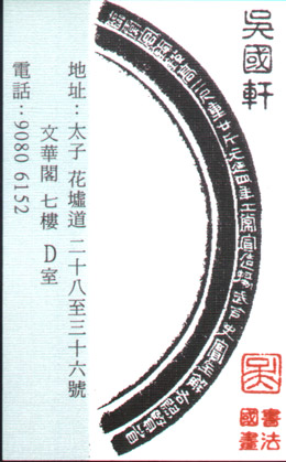 吴国轩,男,早年任职报馆记者,同时历任多间中小学书法、国画班导师、书法公开赛评判。作品曾参加各区展览。