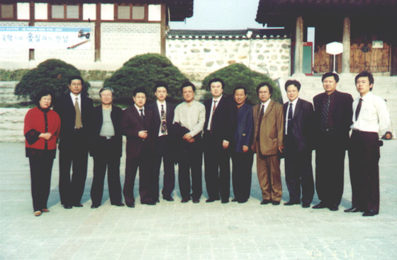 以辽宁省硬笔书法家协会主席张华庆为团长的中韩文化书艺交流访问团全体成员在韩国合影留念
