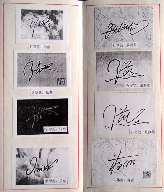 编者按:潘灯先生为本站寄来一册《潘灯签名设计》样稿,共有24页。虽是用复印件剪贴而成,但仍透露出作者的独到创意,具有一定的欣赏与参考价值。不敢独享,特刊发于此,供各位书友浏览。