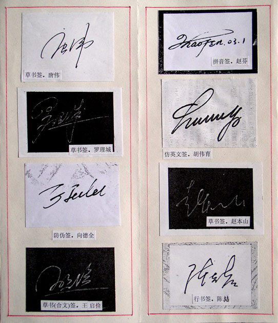 编者按:潘灯先生为本站寄来一册《潘灯签名设计》样稿,共有24页。虽是用复印件剪贴而成,但仍透露出作者的独到创意,具有一定的欣赏与参考价值。不敢独享,特刊发于此,供各位书友浏览。