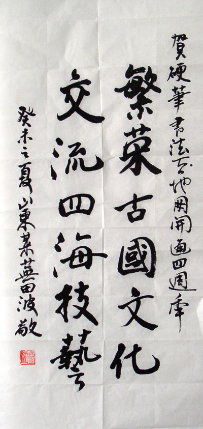 山东田波先生为《硬笔书法天地》开通四周年题贺