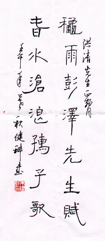 湖南朱健科先生给史洪清的亲笔题字
