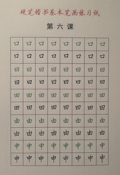 就拿我学的第一个“六”字为例,点儿笔顺是轻起笔、重按笔,回笔收。一撇一反捺把横平分三部分。