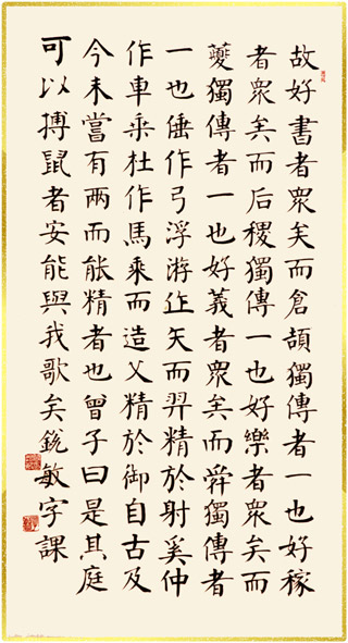 阎锐敏作品润格:按协会规定,每平方尺3000元人民币,百字以上的楷书加倍,大字每字1800元人民币。
