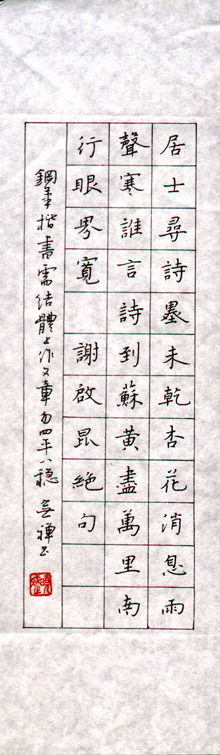 作品尺寸:27×8cm 普通书写纸钢笔书写 义卖价:30元[作者自定] 作品现存《硬笔书法天地》网站