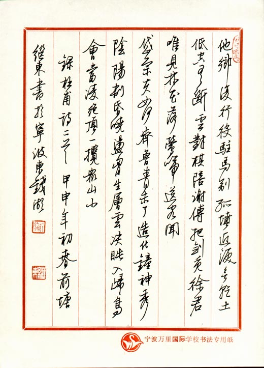 高甬春捐赠张永军硬笔书