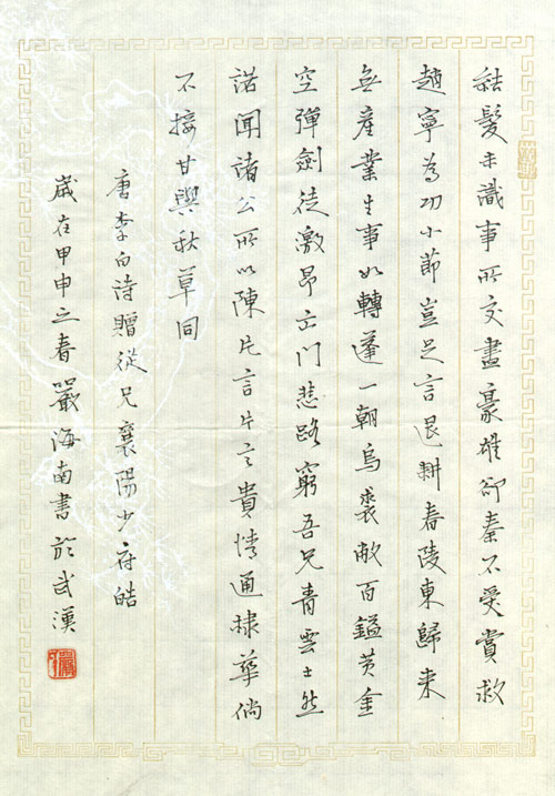 吉林·雨函捐赠张永军硬笔书法作品