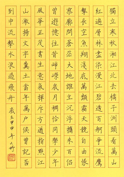 作品编号:J-HDP-6 义卖价:30元(作者自定)作品尺寸:29.7×21厘米 彩色复印纸 购买者请汇款到《硬笔书法天地》