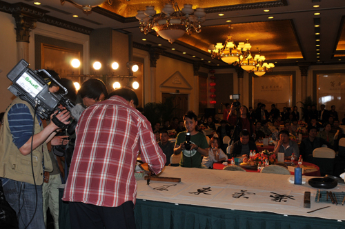 杨再春在开幕式上现场挥毫
