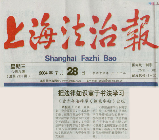 《青少年法律学习钢笔字帖》出版