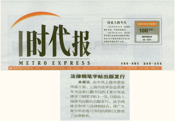 《青少年法律学习钢笔字帖》出版