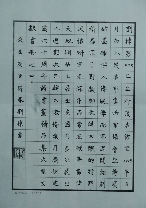 刘栋最新硬笔书法作品2幅