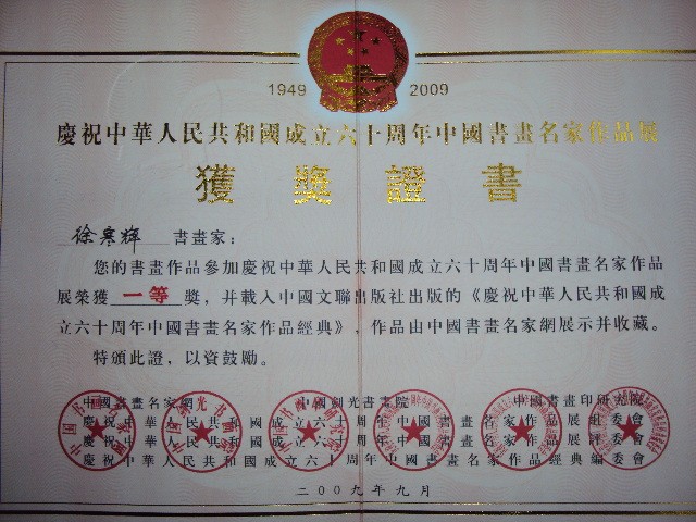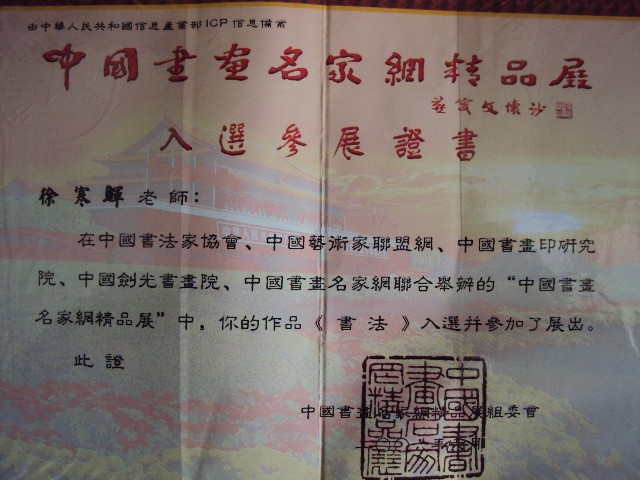 徐寒晖先生简介 1972年6月生,辽宁大石桥人.中共党员,大专学历,毕业于中国书法家协会书法培训中心,又名徐翰晖,晖子.字雅轩,号青云,别号青月斋主人,痴迷于文学与书画艺术.致力于艺术教育与书画艺术创作。担任国际美术家联合会会员,国际艺术教育与人生发展协会会员,中国书画印研究院常务理事,中国书法艺术研究院艺术委员、教育委员,中国硬笔书法家协会会员,辽宁省硬笔书法家协会常务理事,,辽宁省青少年对外艺术交流协会副主席,辽宁省青少年对外艺术交流协会海城分会常务副主席兼秘书长等相关职务.书法作品发表于《中国书法》、《中国艺术报》、《青少年书法报》、《书法导报》、《钢笔书法报》、《中国钢笔书法》等10余种专业期刊.并被《硬笔书法天地网》: www.ybsftd.com《中国书画名家网》: www.chbpn.com《中国书画交易中心》: www.sh1122.com 《当代书法论坛》《中国书法家在线论坛》等大型网站网上推介.传略入编《中华英才爱国书画家大辞典》、《共和国专家成就博览》、《全国优秀师生书法集》、《世界艺术家名人录》等100余部大型书画典籍.作品多次在全国书画大赛中获奖,入展.作品多次被艺术机构和个人收藏,购买。2004年作品被中国国家博物馆等单位收藏.2006年入选中国书法家协会、中国书画印研究院、中国书画名家网主办的中国书画名家精品展.2009年荣获庆祝中华人民共和国建国六十周年中国书画名家大展赛一等奖。多次荣获“中国硬坛百杰”、“中国书法百佳”、“全国优秀书法教师”等荣誉称号.成功组织并策划中国感王纪念建党83周年书画作品邀请展。感王六杰书法作品展,庆祝建国六十周年海城市首届青少年书法美术摄影大赛,为地区书画事业的发展做出了应有的贡献。