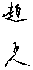 (二)疏密法 疏密法原是书法中的传统签名法。特点是上疏下密。 如左图“赵子人”三字,姓与名之间留有一定空隙,“赵”字单独,“子人”两字连在一起写。这种签名法的好处是主次分明,有层次有变化。