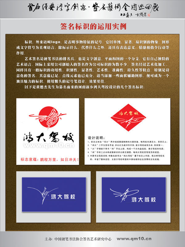 以下是黄德杰先生为慕名而来的河南新乡鸿大驾校设计的几个签名标识。
