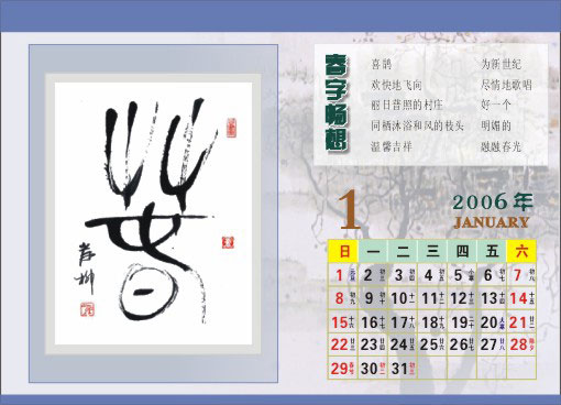 友情珍藏岸柳书法台历及其原创作品
