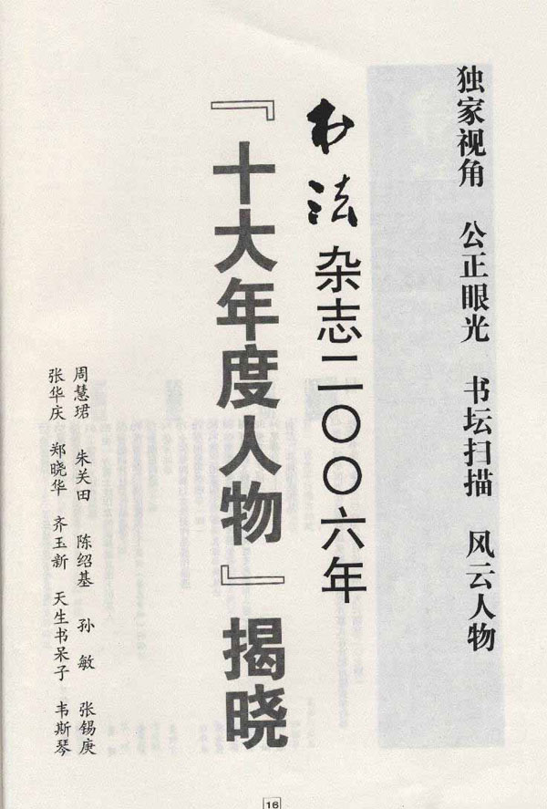 张华庆荣膺《书法》杂志2006年度“十大年度人物”