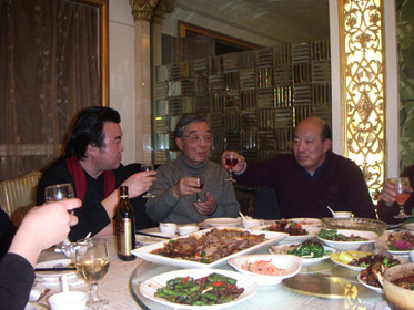 上海硬笔书协领军人物顾炎培(左)先生在豫园