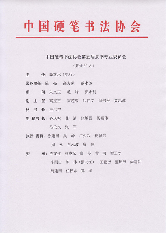 中国硬笔书法协会第五届隶书专业委员会