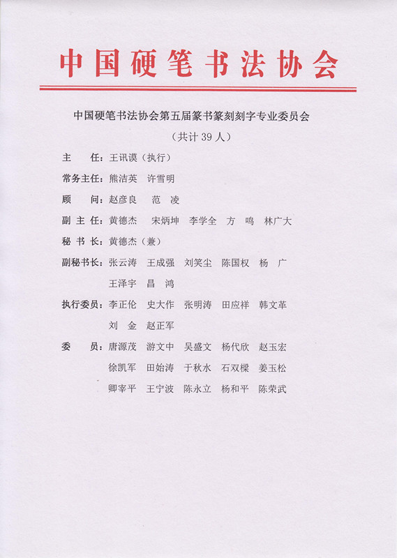 中国硬笔书法协会第五届篆书篆刻刻字专业委员会