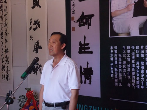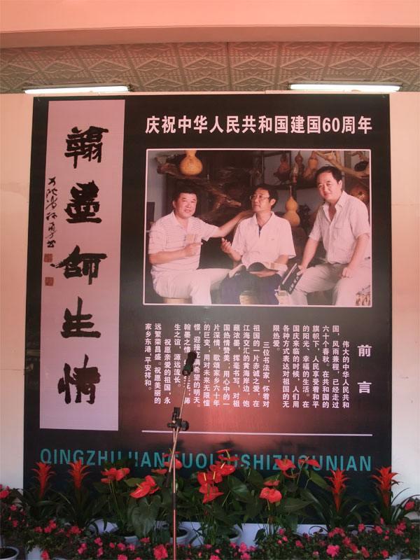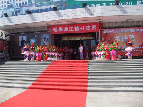 由中共东港市委宣传部主办的“庆祝建国60周年·翰墨师生情书法展”于8月30日上午在辽宁省东港市劳动宫开展。共展出东港市文体局干部于赢增和他的学生史洪良、李明辉近期创作的60余幅书法作品。三位书法家怀着对祖国的一片赤诚之爱,在江海交汇的黄海岸边,饱蘸浓墨,挥毫书写,对祖国热情赞美;用心中的一片深情,歌颂家乡60年的巨变;用对未来无限憧憬,迎接充满希望的美好明天!向新中国60华诞汇报献礼。