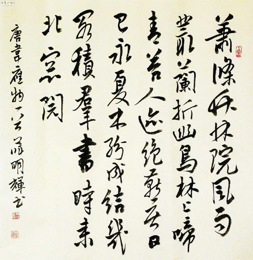 我作为书艺公社负责人之一,对于书艺公社做出这样决定绝对是双手赞成。心动不如行动,6月30日晚,忙完了一天的琐事,我在书房中铺毫濡墨,准备创作一幅作品参加拍卖,将拍卖款项捐献灾区。准备好安徽的粉笺,倒上红星墨液,点上一支香烟,构思写什么内容、什么书体。想来想去,还是写自己比较拿手的行草书。内容选的是唐代诗人韦应物的燕居即事,此内容以前写过,应该是比较轻松的。