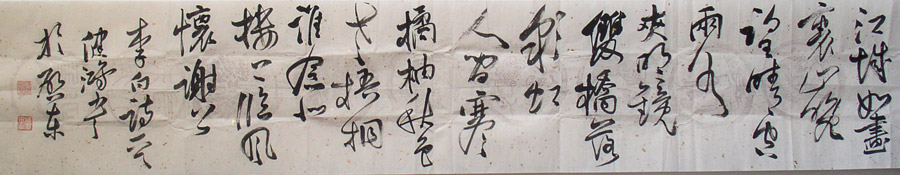 作品编号: M573 原作尺寸: 31 × 162 cm 说 明:全新,洒金瓦当宣纸书写,无装裱。因邮寄有折痕。本图片仅供参考,以实物为准。 起 拍 价: 150元(作者自定)