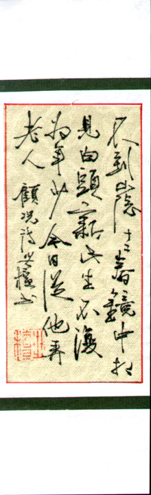 作品编号: 186 原作尺寸: 18.2 cm × 5.7 cm 说 明:全新,绫钢笔书写,简单装裱。 起 拍 价: 20元
