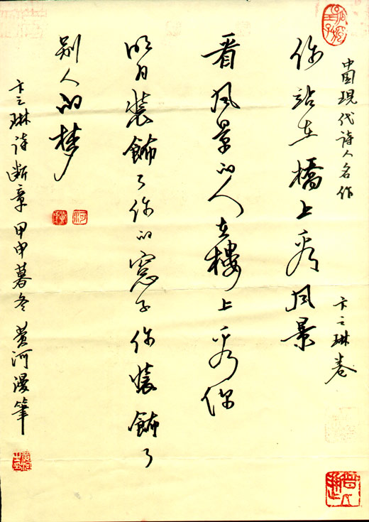 全新,黄复印纸、钢笔黑色墨水书写,未装裱,有折痕。本图片仅供参考,请以实物为准。