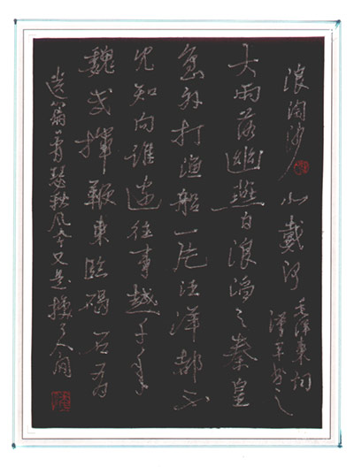 作品编号: Y886 原作尺寸: 20 × 15.2 cm 说 明:全新,黑纸银色珠笔书写,白卡纸装裱,有折痕。图片仅供参考,以实物为准。 起 拍 价: 50元(作者自定)