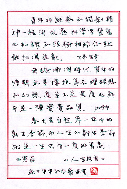 当前位置: 作品展示 > 钱宝成·硬笔书法网上拍卖作品(Y909)