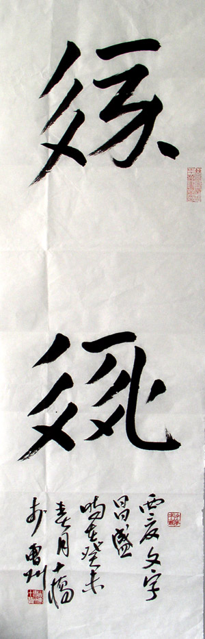 作品编号: M072 原作尺寸: 107 cm × 35 cm 说 明:全新,宣纸书写,无装裱。因邮寄有折痕。 起 拍 价:300元