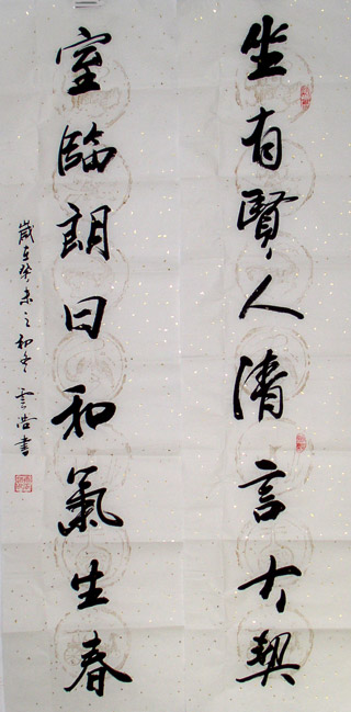 作品编号: M392 原作尺寸: 33 × 130 cm × 2 说 明:全新,洒金瓦当宣纸书写,无装裱。 起 拍 价: 80元 (作者自定)