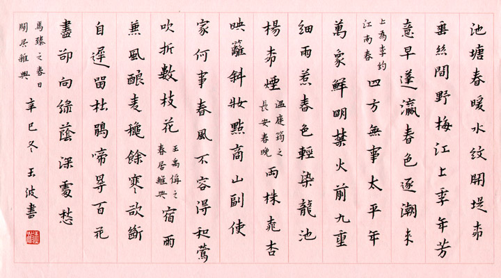 □ □硬笔书法 湖南 张玉波